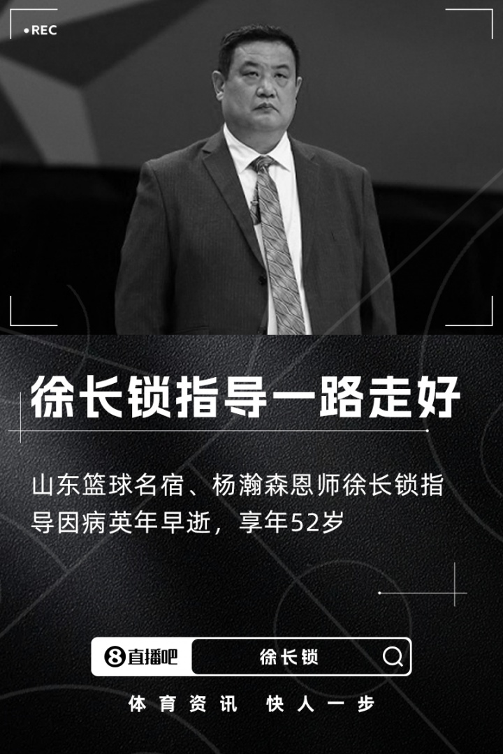 深夜的噩耗傳來,山東籃球的名宿徐長鎖指導因病貽笑於人,英年早逝,享年52歲。哎,這年齡在現代社會可謂正當壯年,可徐指導卻選擇了提前“下場”,真是為人惋惜。